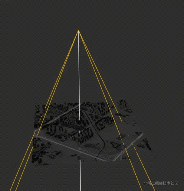 由于 3D 地图中相机位置和角度都会影响视窗范围,所以计算时需要考虑到相机视锥及相机坐标与旋转。