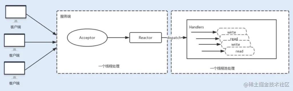 为了解决这种单线程的 NIO 在高负载、高并发场景下的性能瓶颈,后来使用了线程池。