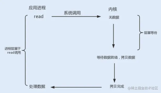 read、write 阻塞:当一个 socket 连接创建成功之后,服务端用 fork 函数创建一个子进程, 调用 read 函数等待客户端的数据写入,如果没有数据写入,调用子进程将被挂起,进入阻塞状态。