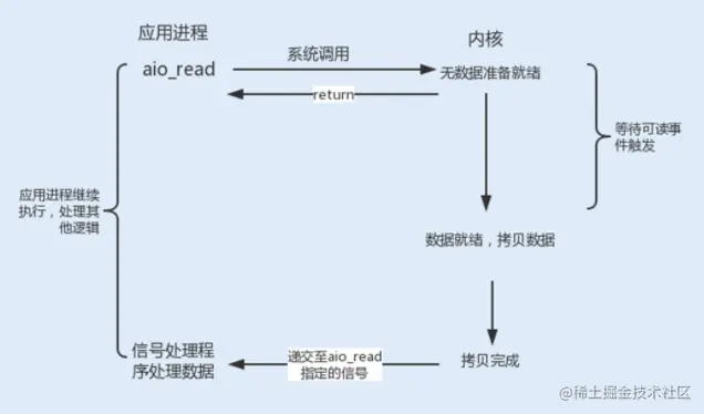 在 I/O 复用模型中,执行读写 I/O 操作依然是阻塞的,在执行读写 I/O 操作时,存在着多次内存拷贝和上下文切换,给系统增加了性能开销。