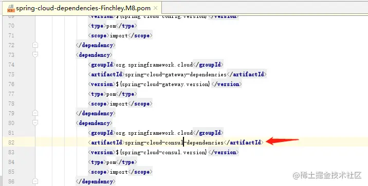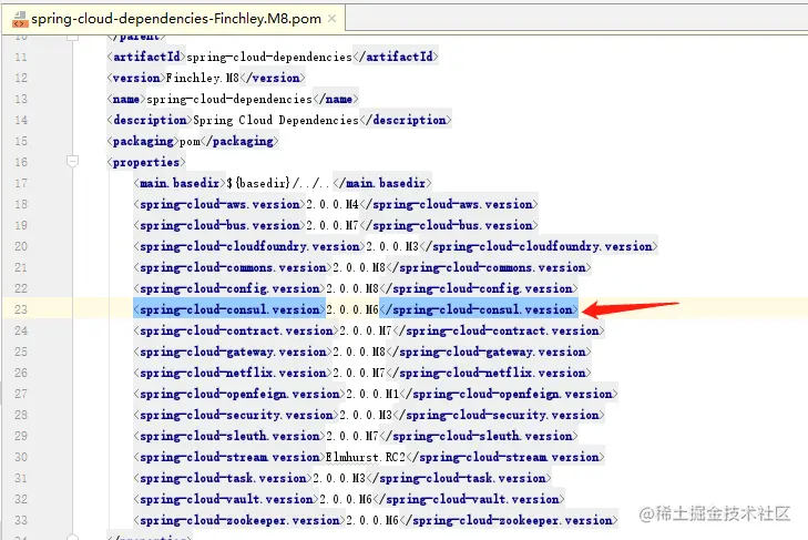 我们项目中引入consul的jar,但是没有指定版本, 是因为在dependencyManagement中帮我们进行管理啦。