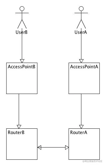 UserA和UserB分别将自己的信息注册在RouterA和RouterB中。RouterA和RouterB使用数据同步(2PC),来同步信息。那么当UserA想要向UserB发送一个消息的时候,需要现在RouterA中查询出UserA到UserB的消息路由路径,然后再交付给相应的路径进行路由。