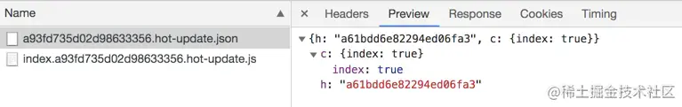 首先看json文件,返回的结果中,h代表本次新生成的Hash值,用于下次文件热更新请求的前缀。c表示当前要热更新的文件对应的是index模块。