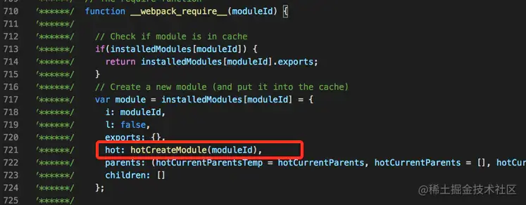 我们发现moudle新增了一个属性为hot,再看hotCreateModule方法。 这不就找到module.hot.check是哪里冒出来的。