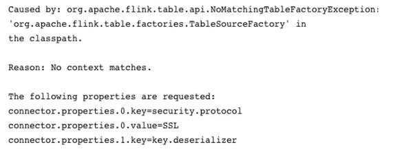 指的是,定义了一个 DDL,在用的时候,DDL 属性找不到对应的 TableFactory 实现,可能的原因是: