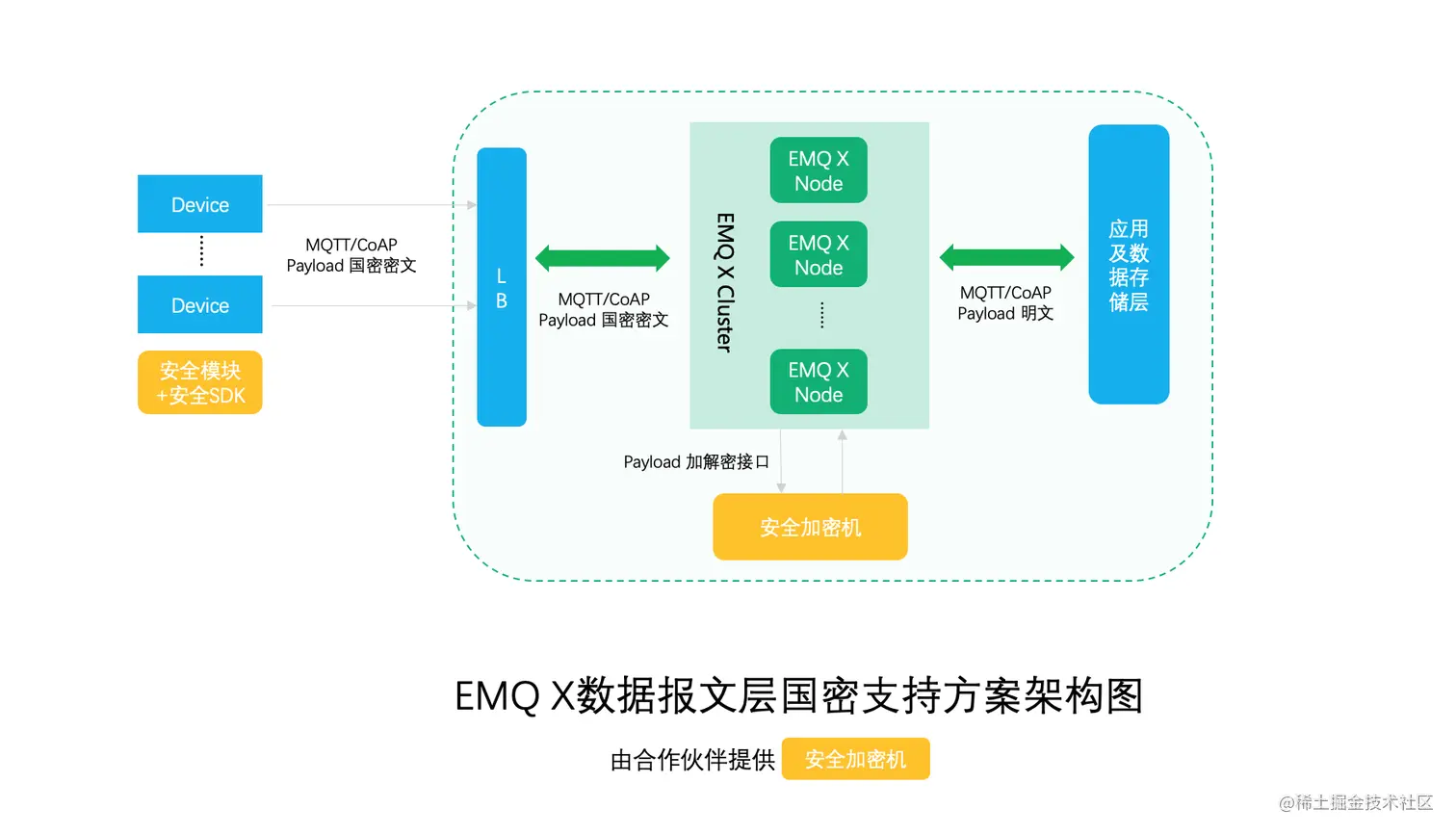 综上所述, EMQ 在安全方面从设备、边缘端到云端,从连接层到数据层提供了完整的安全方案,支持基于国密算法的完整解决方案,帮助政府、企业更加安全高效的应用物联网技术实现新时代数字化转型。