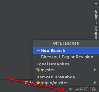 在as 的顶部工具栏 VCS--->Git---->branches ,点击branches可以查看这个项目的分支信息、在我的as的右下角 有一个git 按钮