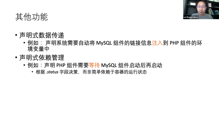 A3:本次 ppt 中没有 docker-compose 的例子,但是这个其实很容易去理解,因为 OAM 将 Kubernetes API 分为两类,一个叫做 Components,一个叫T raits。有这么一个 Componets 文件,就可以直接映射 OAM 的概念,docker-compose 中有个概念叫做 Service,其实就是对应了 OAM 中的 Component。这完全是一对一对应关系。Service 下面有个 Deployment,有个部署策略,其实对应的就是 OAM 的 Trait。