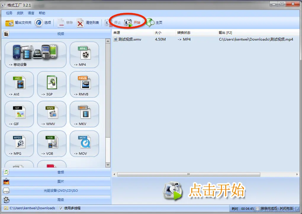 9、点击开始按钮,开始转换