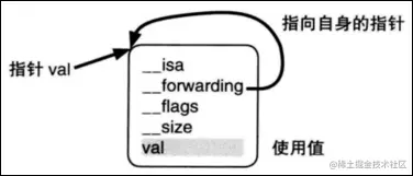 在结构体中有一个__forwarding指针指向自己,在后续访问__block变量的时候也是通过__forwarding指针来进行访问