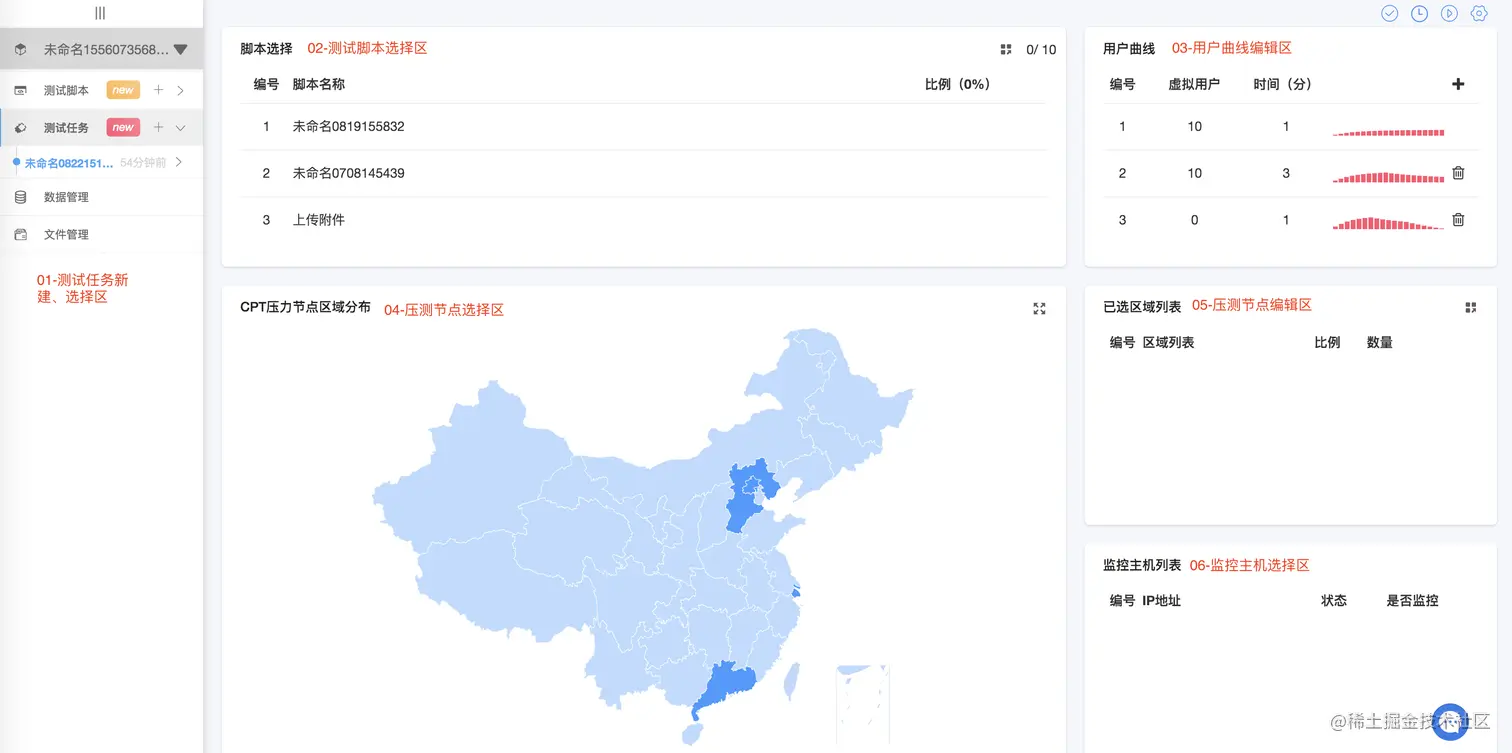 · 第一部分爬升区默认无法清除,系统根据用户数量和执行时间自动按照均分模式加载测试用户;