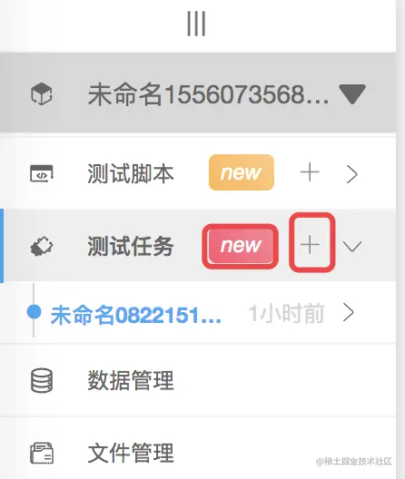 · 通过点击测试任务右侧的 new 或者 + 按钮,创建测试任务