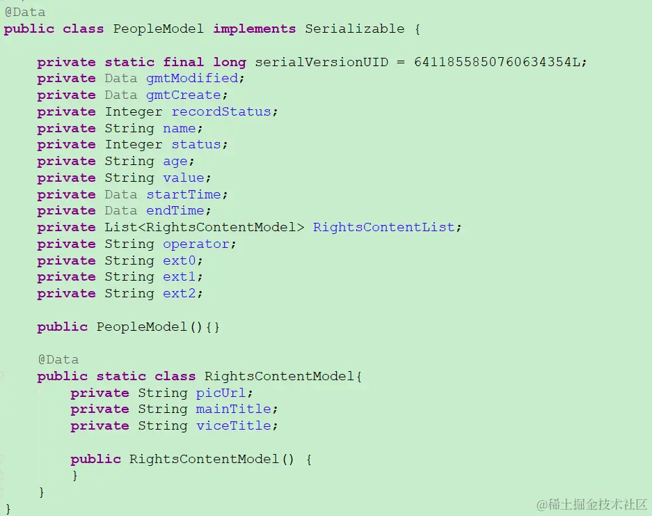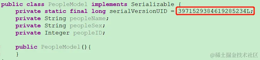 - 如果People类在B新增属性age后,A传给B,UID一致,会导致:age属性被赋予默认值0
