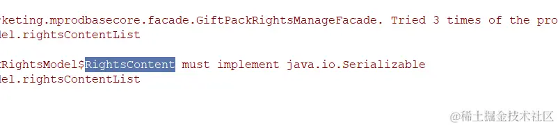 保存权益的对象中,RightsContentModel 也需要继承序列化接口。修改后,问题解决。