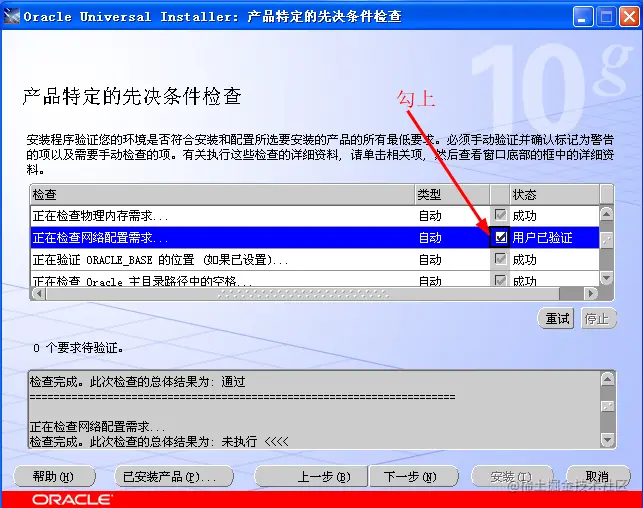 结果表明我们成功了。接下来我们可以正式安装Oracle了。