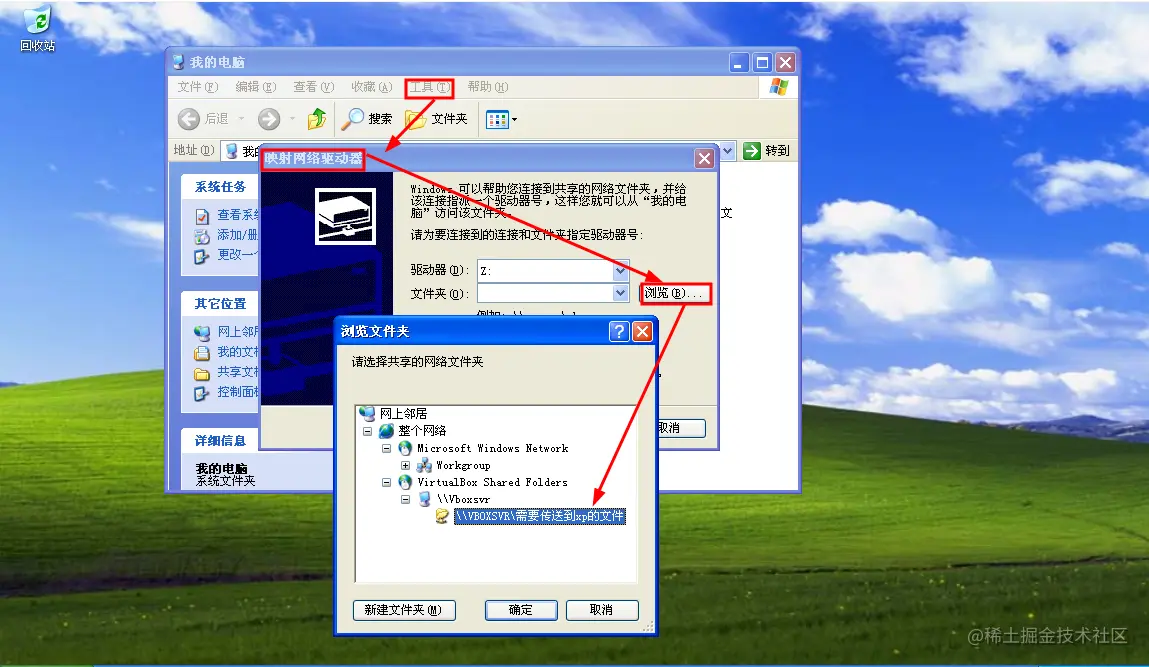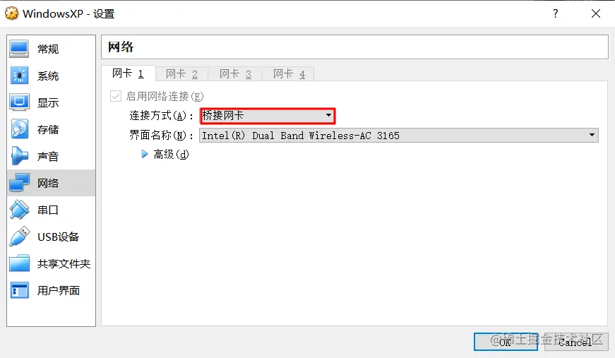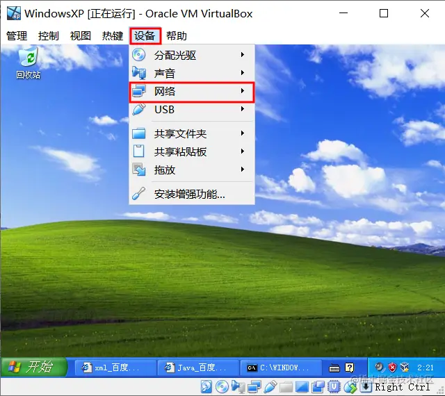 接下来还需要关闭一下xp系统的防火墙。这样可以成功的原因在于使主系统与xp系统的网段一样。如下: