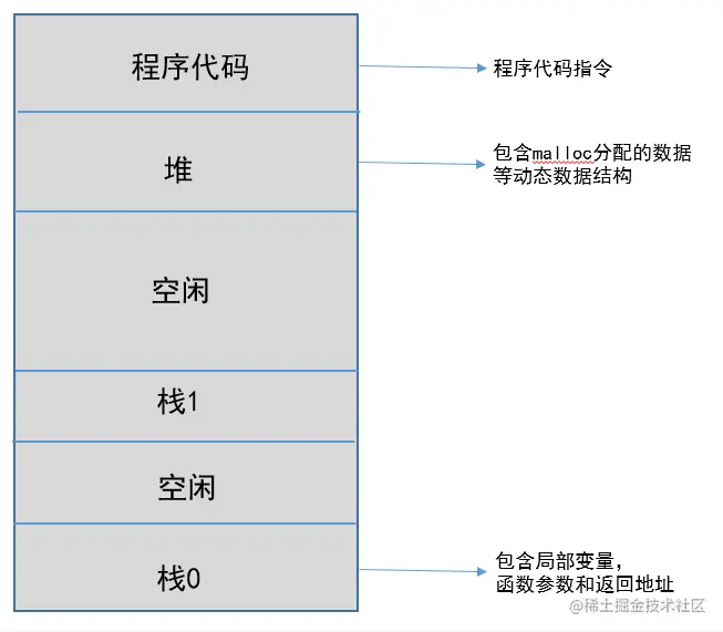 线程-也是操作系统提供的抽象概念,是程序执行中一个单一的顺序控制流程,是程序执行流的最小单元,是处理器调度和分派的基本单位。一个进程可以有一个或多个线程,同一进程中的多个线程将共享该进程中的全部系统资源,如虚拟地址空间,文件描述符和信号处理等等。但同一进程中的多个线程有各自的调用栈和线程本地存储(如下图所示)。