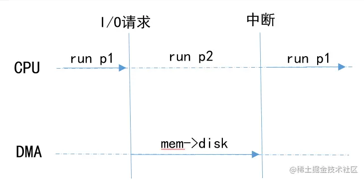 下面主要解释一下I/O密集型的情况。与I/O设备交互,目前最常用的解决方案就是DMA。