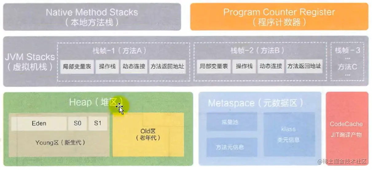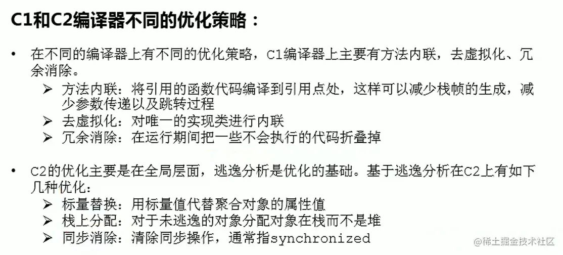 - 编译执行: 先编译,再执行,需要编译器,JIT(Just In Time)即时编译器。分类有优化编译更为保守的Client Complier(C1编译模式),和优化编译更为激进的Server Complier(C2编译模式)
