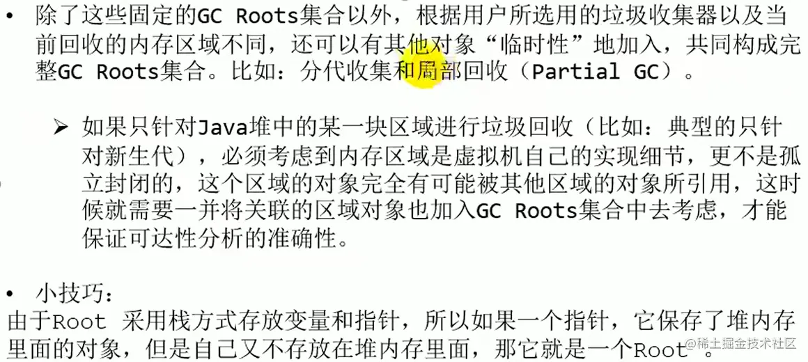 当线程即将离开Safe Region时,会检查JVM是否已经完成GC,如果完成了,则继续运行,否则线程必须等待直到收到可以安全离开Safe Region的信号为止
