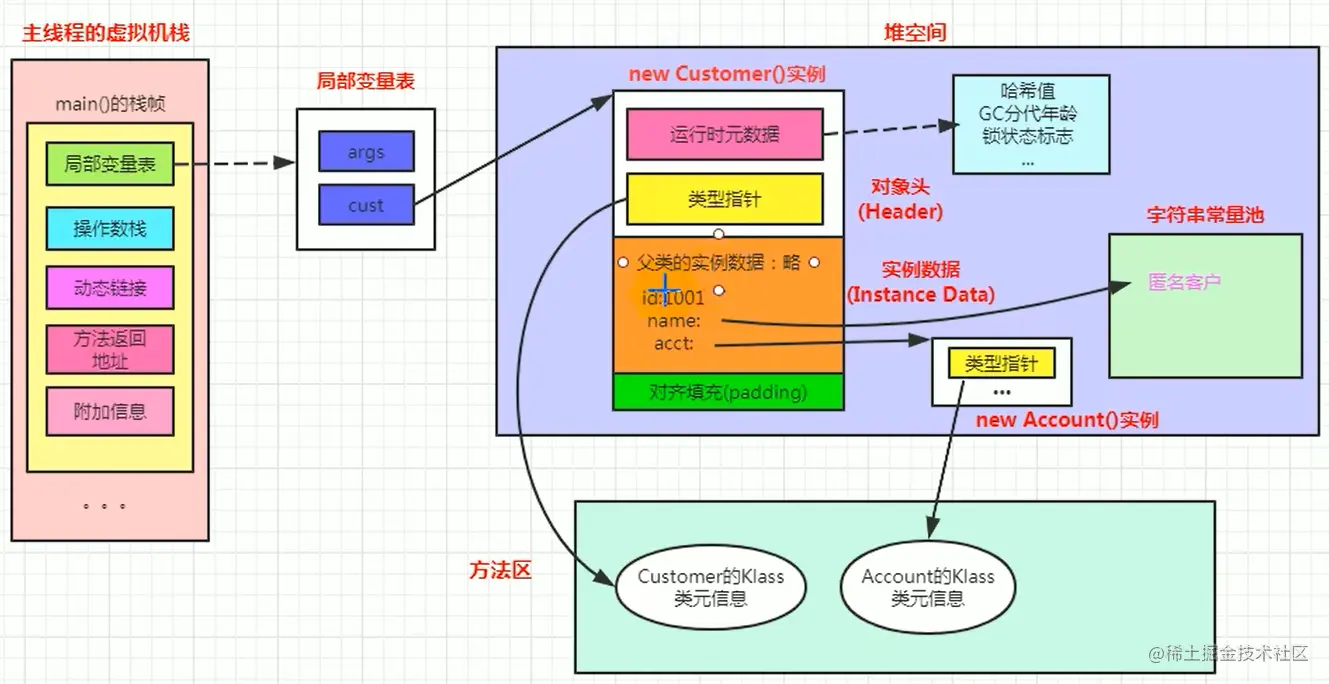 此处也不会为实例变量(非static修饰的成员变量)分配初始化,类变量会分配在方法区中,而实例变量是会随着对象一起分配到Java堆中