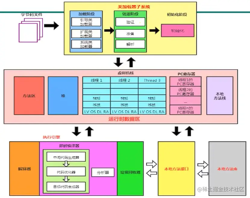 Java虚拟机就是二进制字节码的运行环境,负责装载字节码到其内部,解释/编译为对应平台的机器指令,每一条Java指令,Java虚拟机规范中都有详细定义,如怎么取操作数,怎么处理操作数,处理结果放在哪里