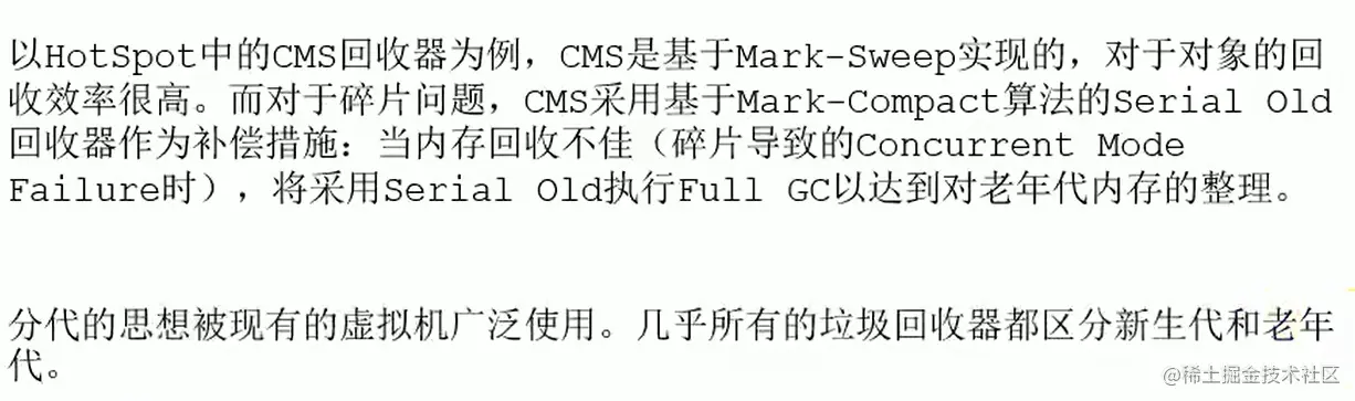 在HotSpot中,新生代使用复制算法,老年代使用标记-清除和标记-整理的混合实现