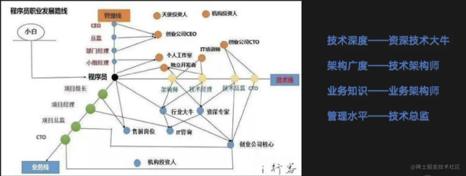 程序员-->初级工程师-->技术专家-->架构师-->项目经理-->CTO