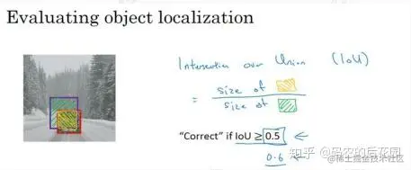 那么回到刚刚的问题:如何利用IOU进行判断算法的预测效果好坏呢?也就是这个预测框是否可以当做正确的定位到我们的目标汽车呢?
