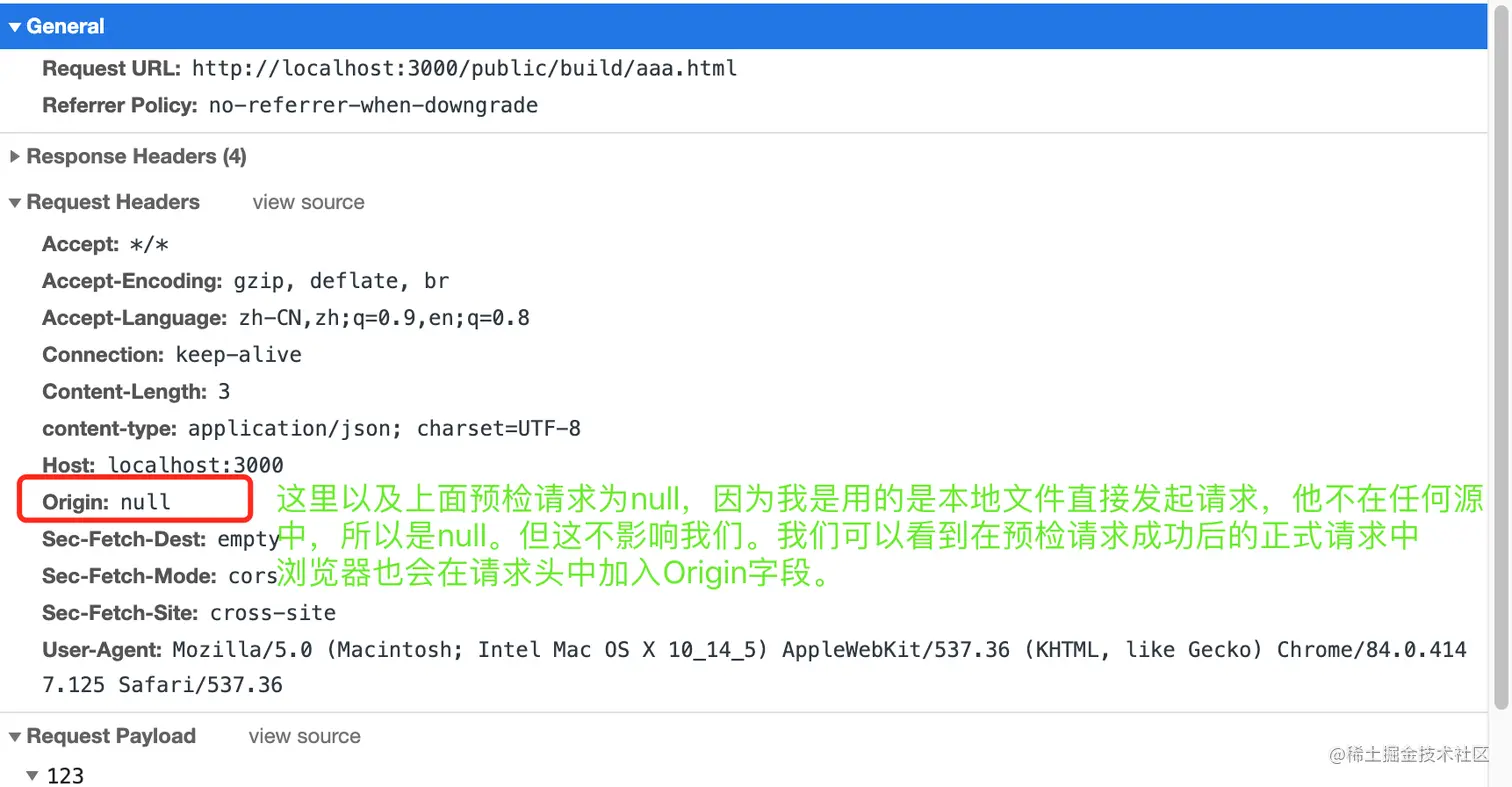 下图为同源访问:http://localhost:3000/public/build/aaa.html 访问http://localhost:3000/public/build/api/getList,注意观察request的header里面是没有Origin字段的。