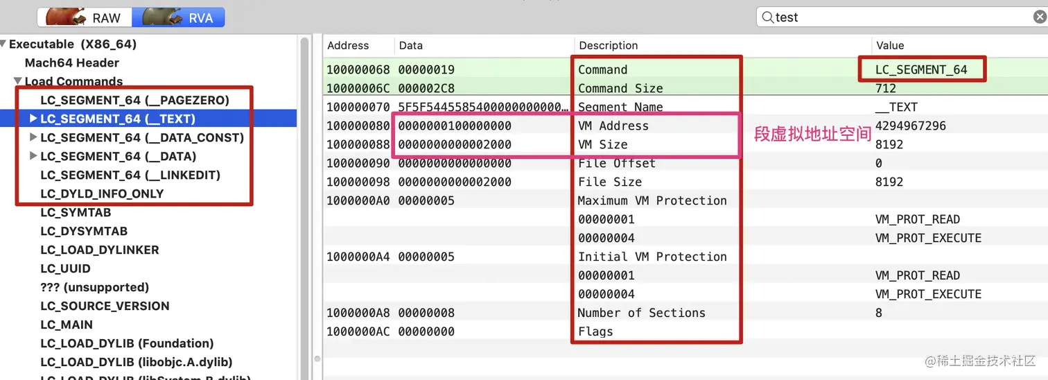Mach-O中的Mach64 Header中包含了Load Commands数量,Load Commands加载命令中包含了LC_SEGMENT_64,该加载命令数据结构包含了命令名称Command、虚拟地址VM Address及其大小VM Size,因此可以通过遍历获取LC_SEGMENT_64中的各个段的虚拟起始地址及其范围,就可以比较来定位是否在该段中,进而就可以确定是否在该镜像中。具体代码如下:static uint32_t imageIndexContainingAddress(const uintptr_t address) { const uint32_t imageCount = _dyld_image_count(); const struct mach_header* header = 0; for(uint32_t iImg = 0; iImg < imageCount; iImg++) { header = _dyld_get_image_header(iImg); if(header != NULL) { // Look for a segment command with this address within its range. uintptr_t addressWSlide = address - (uintptr_t)_dyld_get_image_vmaddr_slide(iImg); uintptr_t cmdPtr = firstCmdAfterHeader(header); if(cmdPtr == 0) { continue; } for(uint32_t iCmd = 0; iCmd < header->ncmds; iCmd++) { const struct load_command* loadCmd = (struct load_command*)cmdPtr; if(loadCmd->cmd == LC_SEGMENT) { const struct segment_command* segCmd = (struct segment_command*)cmdPtr; if(addressWSlide >= segCmd->vmaddr && addressWSlide < segCmd->vmaddr + segCmd->vmsize) { return iImg; } } else if(loadCmd->cmd == LC_SEGMENT_64) { const struct segment_command_64* segCmd = (struct segment_command_64*)cmdPtr; if(addressWSlide >= segCmd->vmaddr && addressWSlide < segCmd->vmaddr + segCmd->vmsize) { return iImg; } } cmdPtr += loadCmd->cmdsize; } } } return UINT_MAX; } -