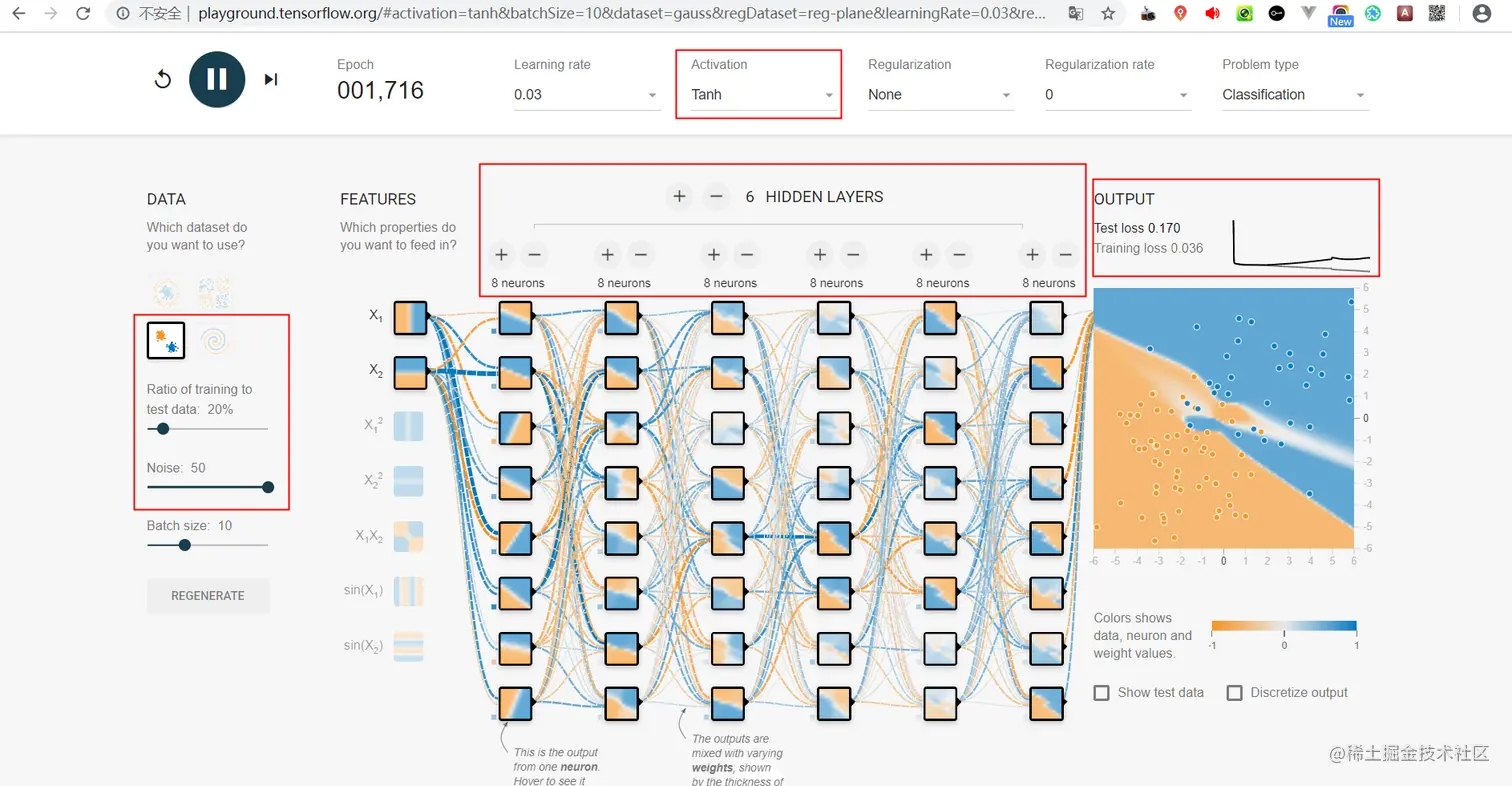 下面我们一起去playground.tensorflow.org/中直观地感受下过拟合: