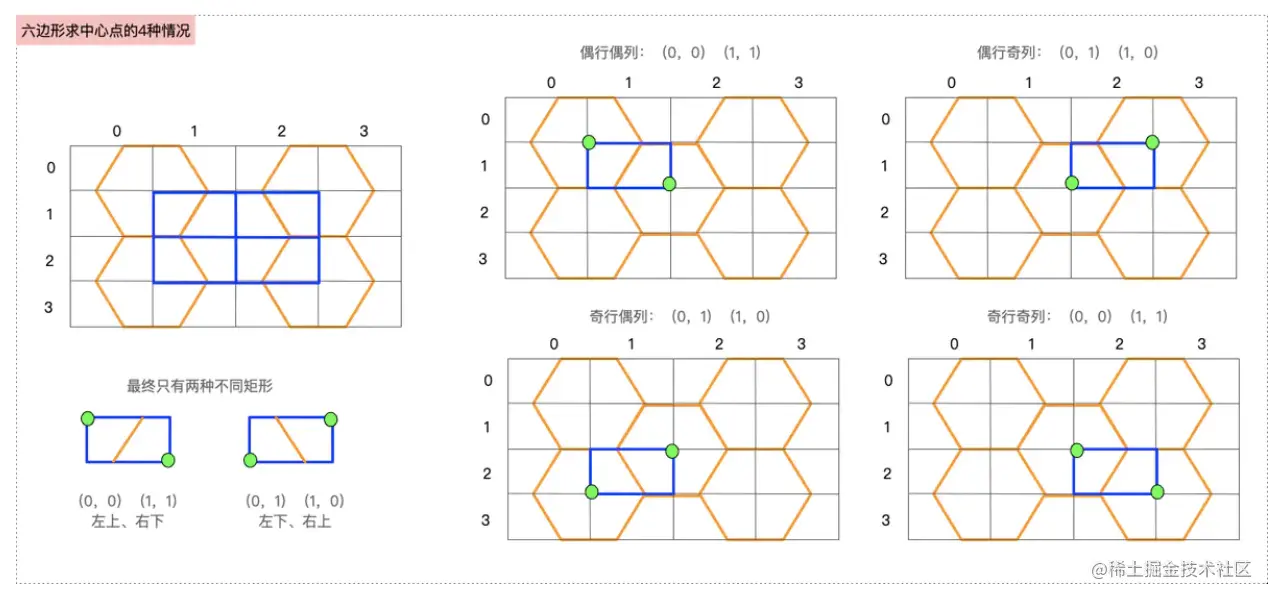 取每个六边形的中心点画出一个矩阵,如图