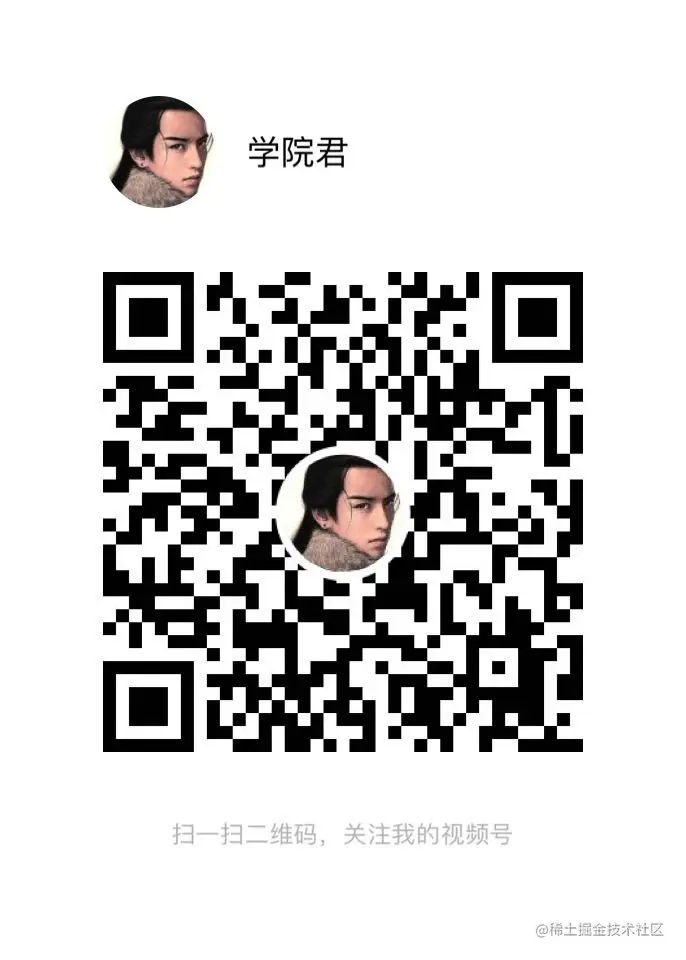 PS:本系列教程会录制视频演示,并发布到学院君微信视频号,欢迎扫码关注:
