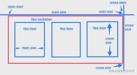 flex-direction:row(水平)/ row-reverse(水平倒序,从右边开始排)/ column / column-reverse,主轴方向(main axis),决定项目排列方向