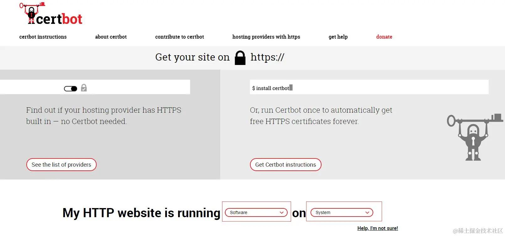 1. 首先打开电子子前哨基金会EFF的 Certbot的网站:certbot.eff.org