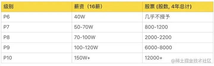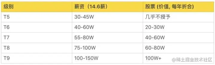 互联网大厂新入职员工各职级薪资对应表(技术线)~