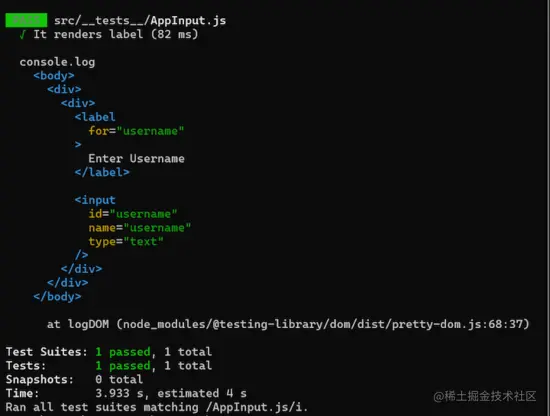 上述测试失败是因为getByLabelText找不到标签的关联输入字段。错误消息如下所示:
