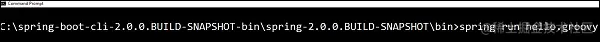 现在保存groovy文件,命名为 hello.groovy。请注意在这个例子中,我们在Spring Boot CLI bin 目录保存了groovy文件。现在使用命令spring run hello.groovy 运行应用,如下图所示: