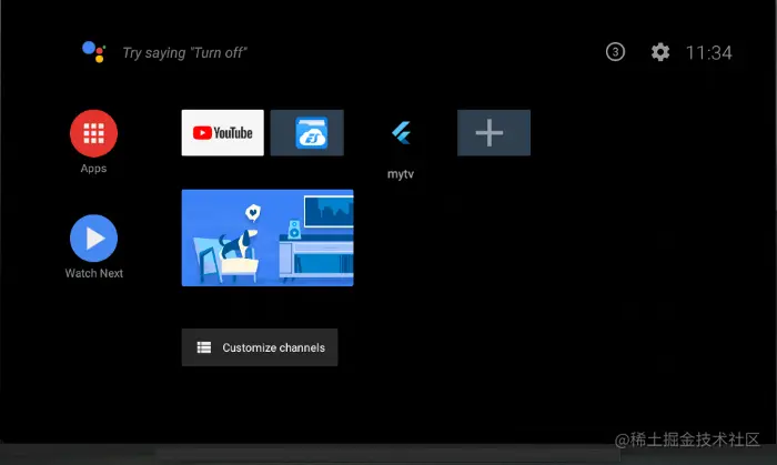 一个打算在电视设备上运行的应用程序必须在其清单中声明一个电视的启动器活动。它使用LEANBACK_LAUNCHER意图过滤器来实现这一点。该过滤器将您的应用程序识别为已启用电视,并让Google Play将其识别为电视应用程序。当用户在电视主屏幕上选择您的应用时,该意图会识别要启动的活动。