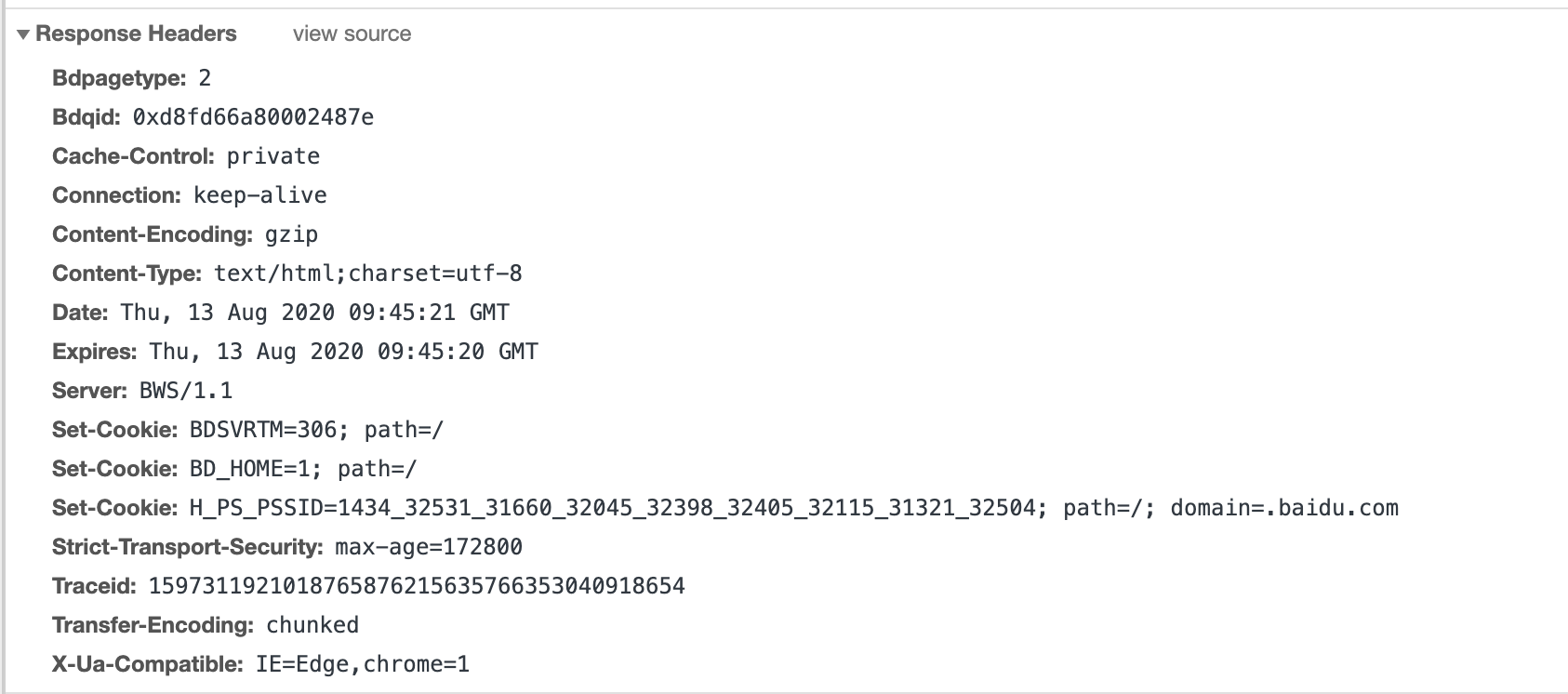 请求发送过去后,服务器开始处理。处理完之后服务器将返回请求响应头,以及响应体