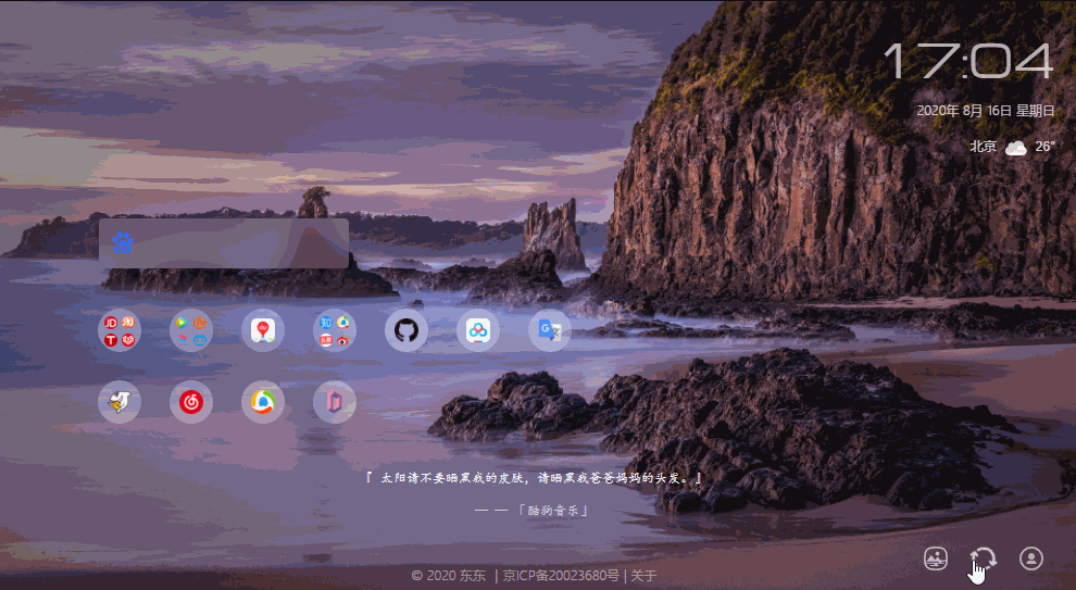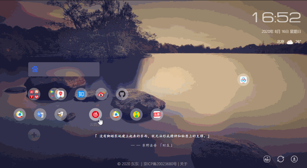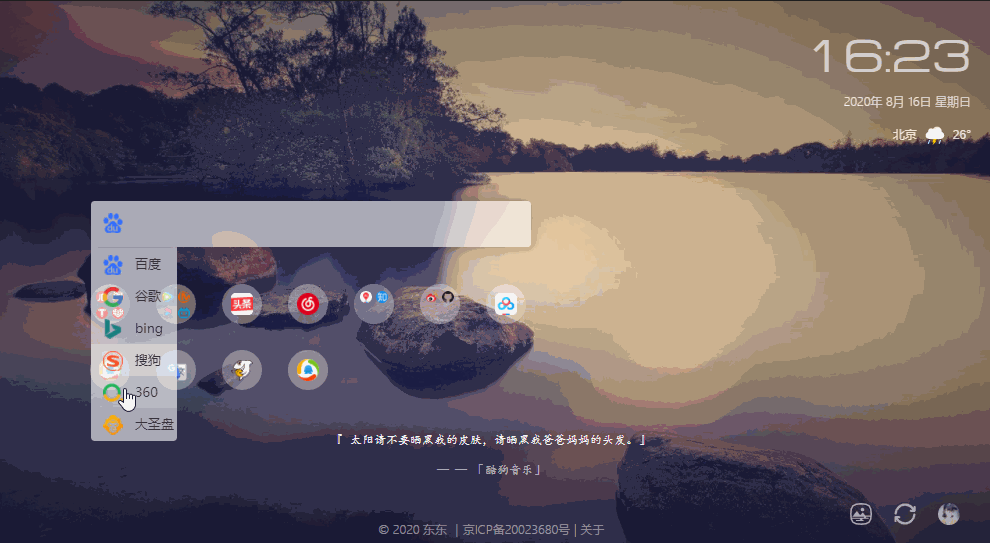 最近写了一个主页,吸收了前辈们的一些优点,增加了一些创新与改进,最终产出了东东起始页。