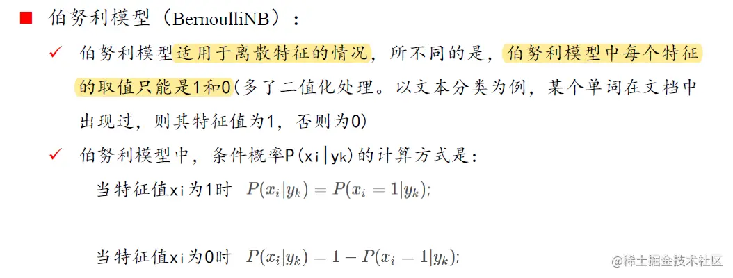 (二)伯努利模型(BernoulliNB)