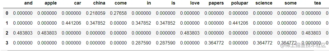 pd.DataFrame(re.toarray(),columns=tfidf.get_feature_names())