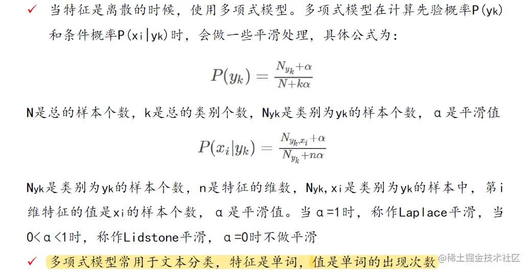 - 注:平滑处理是为了预防某些条件概率为0,数据要先进行二值化才能调用模型(如伯努利模型),不能再模型中做二值化操作。