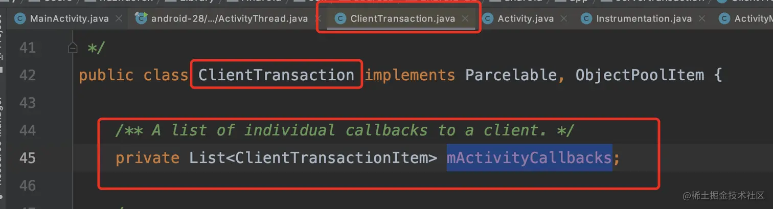 Field mActivityCallbacksField = mClientTransactionClass.getDeclaredField("mActivityCallbacks");