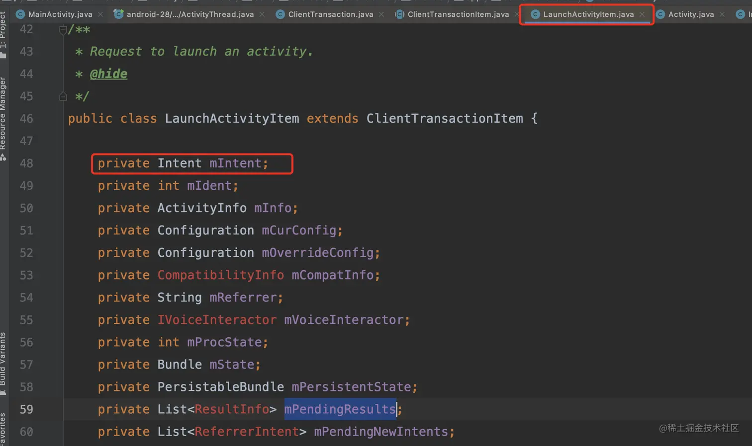 果然在LaunchActivityItem中发现了熟悉的intent属性,接下来进行替换targetIntent操作