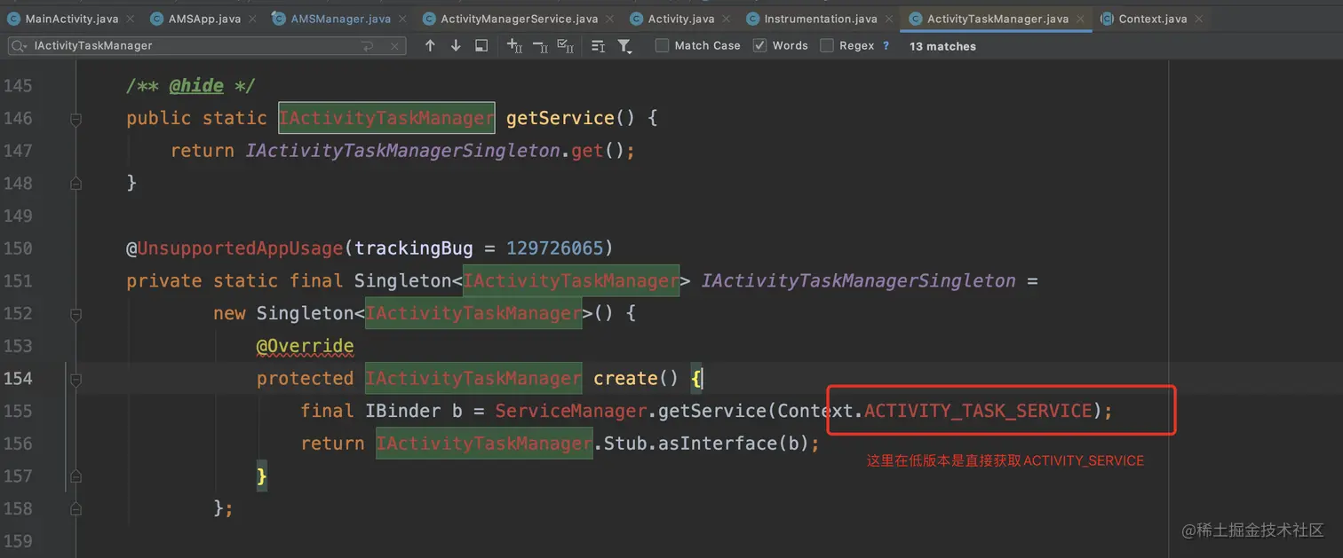 getService还是那个getService,但ActivityManager却不是那个ActivityManager了,变成了ActivityTaskManager