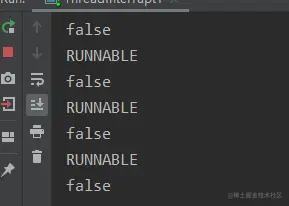 可以看到线程刚开始运行的时候isInterrupted是false,运行一会之后,isInterrupted变成了true。