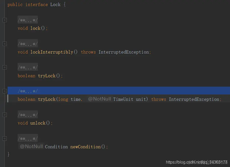 上图是Lock接口中的一些方法,下面说下每个方法的作用: